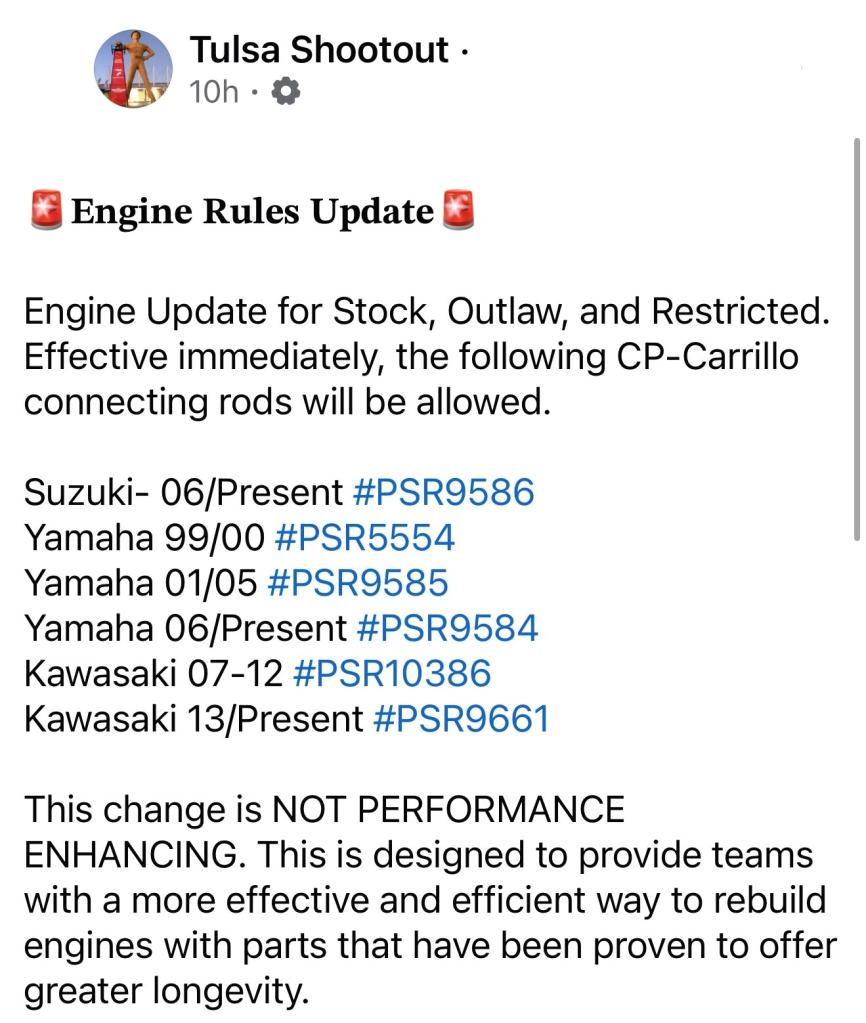 Engine Rules Update Engine Update for Stock, Outlaw, and Restricted.